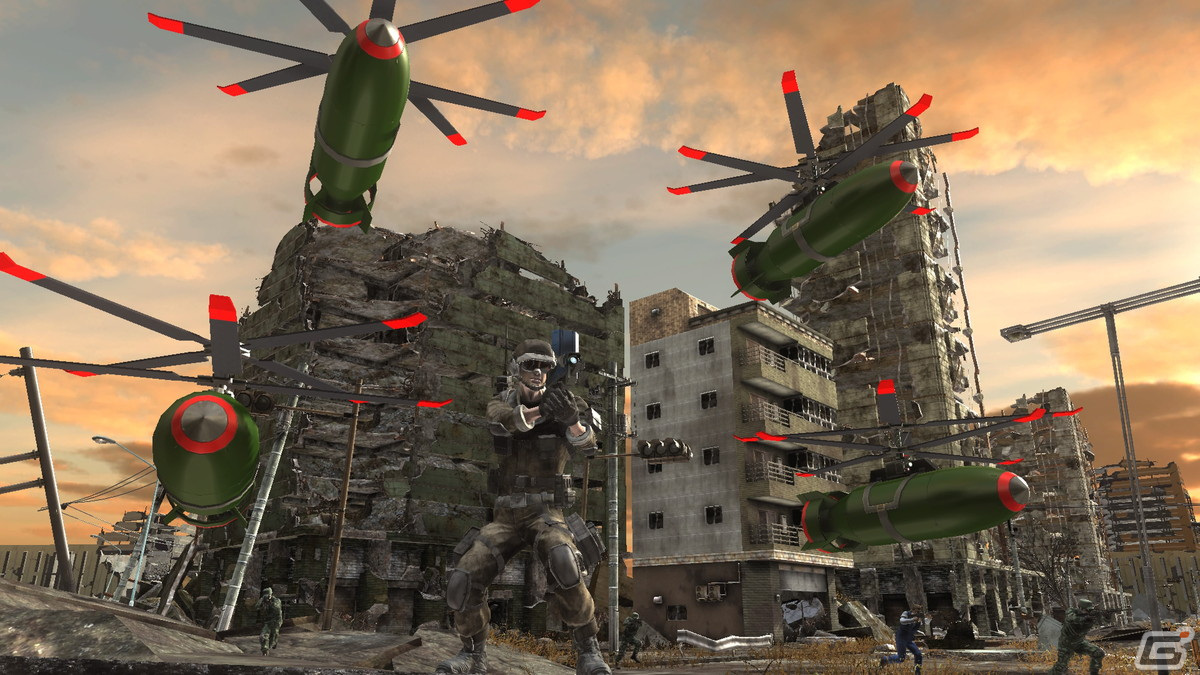 最初に言っておく、EDF隊員諸君は安心してくれ。彼はかなり強い。かつて最前線から攻撃機や砲兵と連携をとり、歩兵でありながら空軍や砲兵に攻撃を指示したエアレイダー。独特の戦闘スタイルを持つ特殊な兵科は、文明崩壊後の世界でも侵略者に立ち向かう新たな力を得た。自律制御マルチコプターを駆使した戦闘スタイルは、本作のひとつの目玉である。退化した世界で進化を遂げたエアレイダーの新しい戦い方とは? その一部を紹介する。